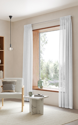 Vorhänge sind die Urform des Sonnenschutzes. Dicht gewebte Stoffe schaffen eine warme, fast theatrale Stimmung, während leichte, halbtransparente Stoffe einen Raum luftig und hell erscheinen lassen. Thermovorhänge bieten einen zusätzlichen Wärmeschutz, dämpfen Lärm und sichern einen hohen Sichtschutz – etwa im Schlaf- oder Kinderzimmer.